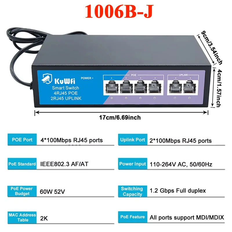 5.PoE switch is ideal for powering PoE devices such as IP cameras, WLAN access point, IP phones, office access control systems, and other PD devices and offers a line of high quality products