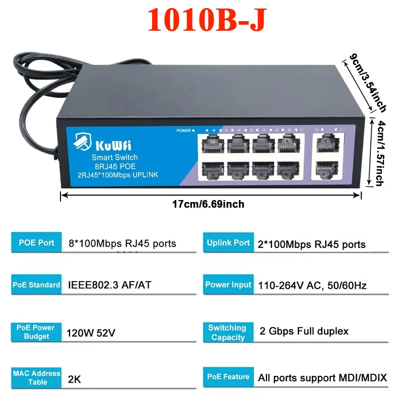 ● Port: 8*10/100Mbps PoE + 2*10/1000Mbps Uplink