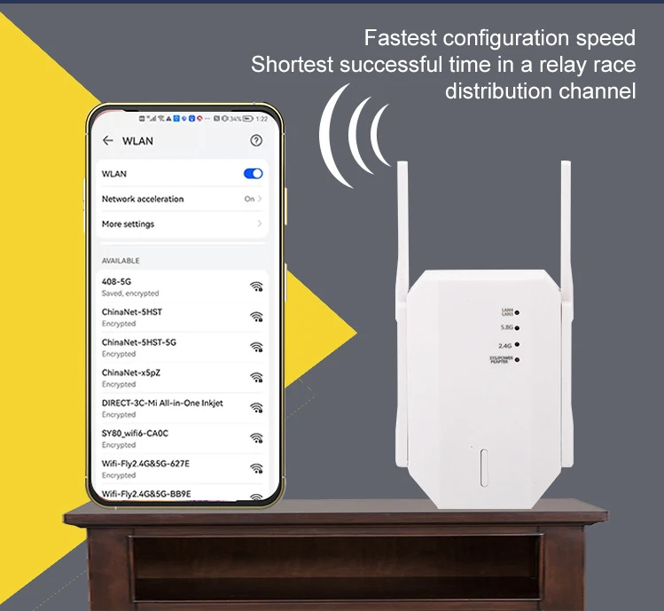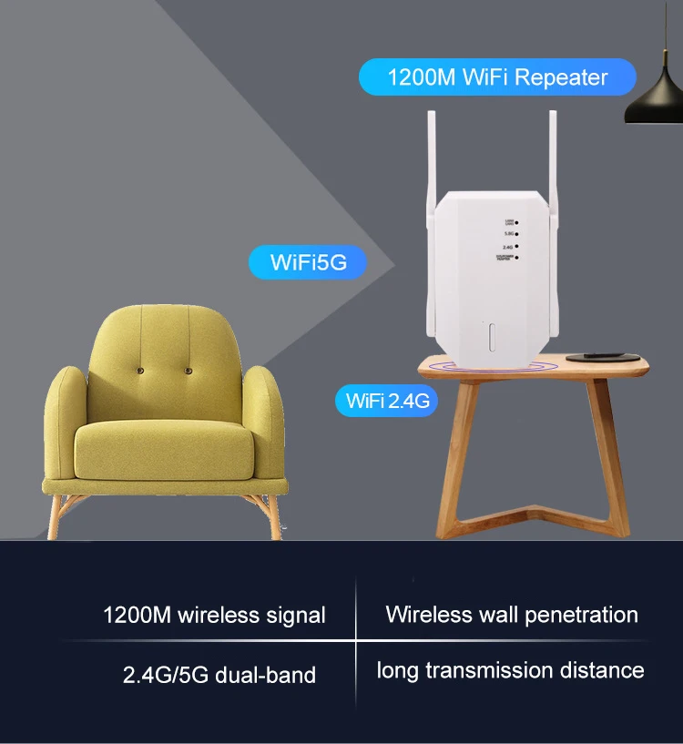 KuWFi 1200Mbps Wireless Repeater Dual Band Wifi Signal Booster Wifi Range Extender Router Network Amplifier 2 LAN Port 4 Antenna