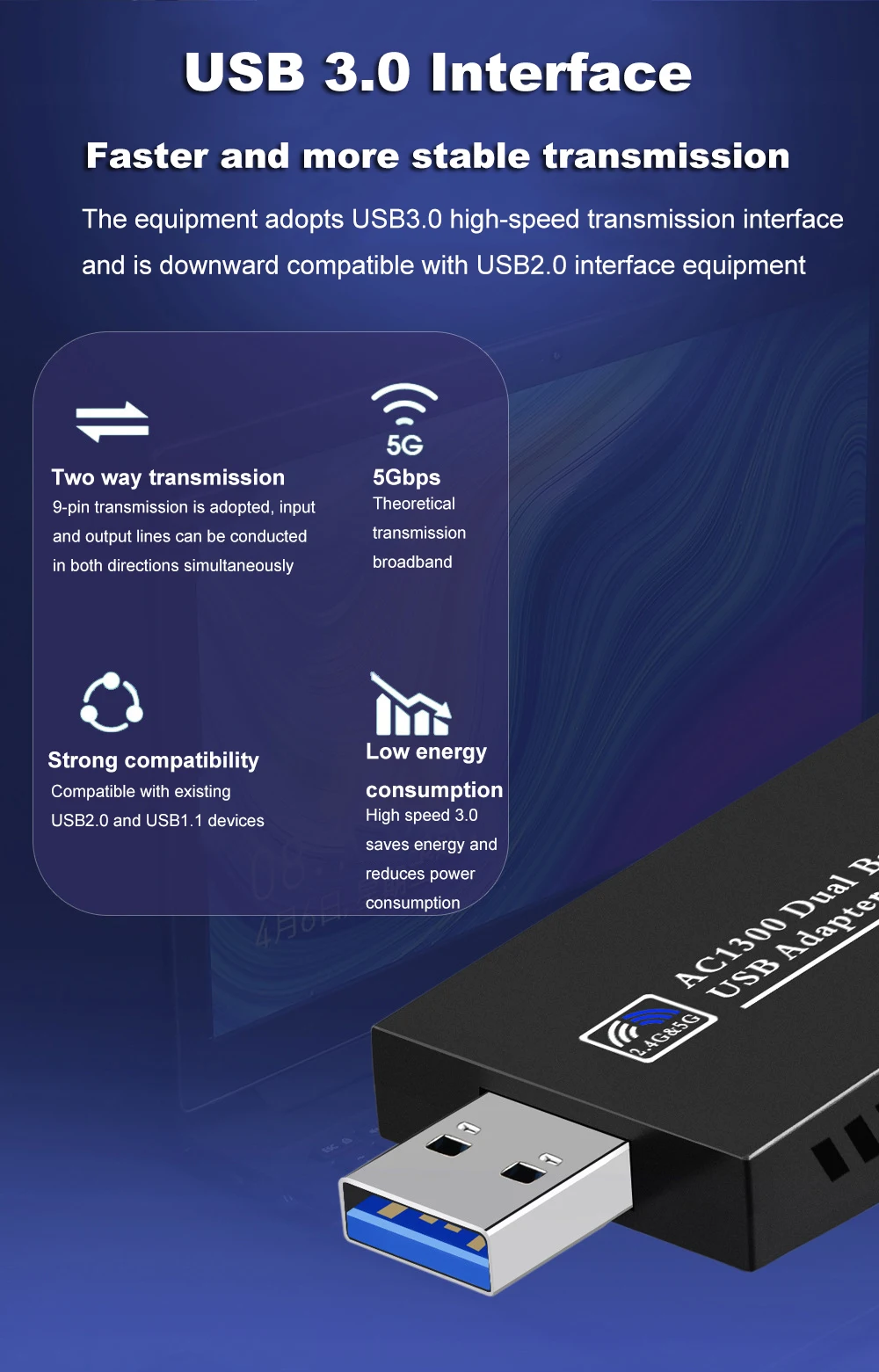 1. Item Name: 1300Mbps Dual-Band WiFi Adapter