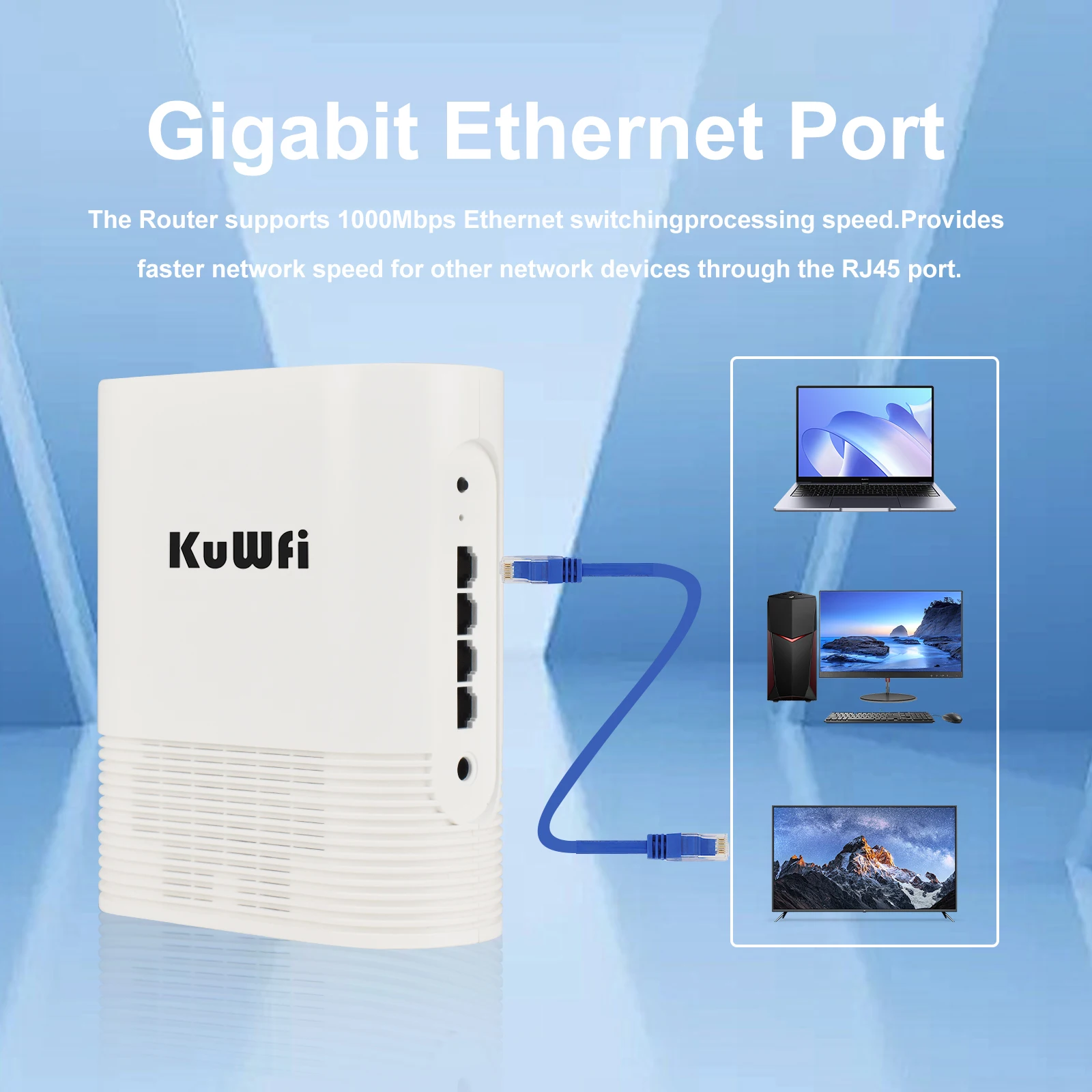 The WR3000K router comes with a 1000Mbps WAN port and three 1000Mbps LAN ports,provides faster network speed for other network devices through the RJ45 port.