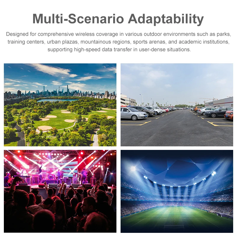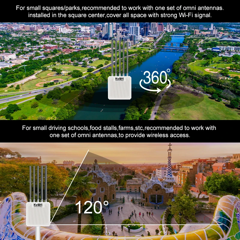 A5: The router is equipped with omni wifi antenna and support 360-degree signal transmission, making it suitable for various scenarios. Open areas such as factories, parks, gardens, etc.