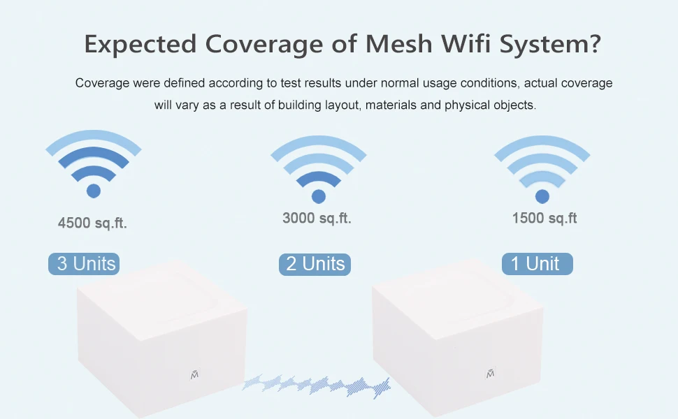 【No WIFI Dead Zone Anymore】 Mesh wifi device works seamlessly to create stable whole home wifi coverage and support up to 30 wireless devices at the same time. Just add more units as your needs change, 1 unit covers up to 1500 square feet.