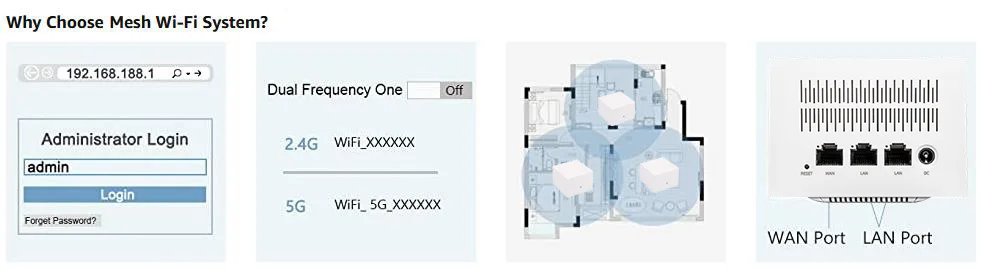 WiFi seamless roaming, large area coverage wireless mesh network system. Simple installation, one-click automatic networking