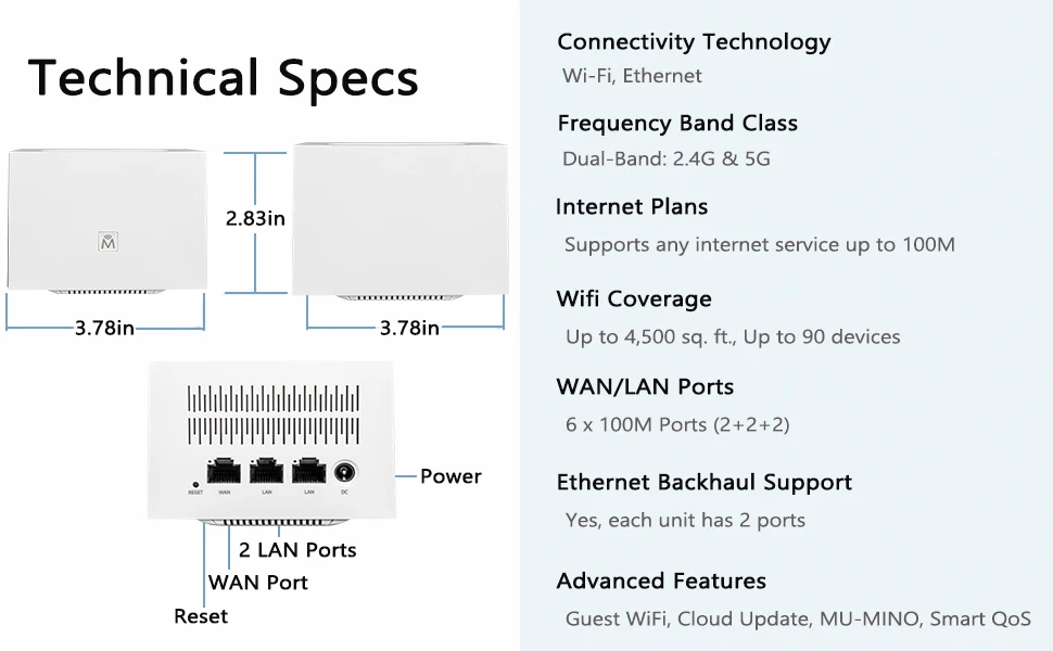 Coverage of up to 4,000 square feet 2-Pack Whole home mesh WIFI router.