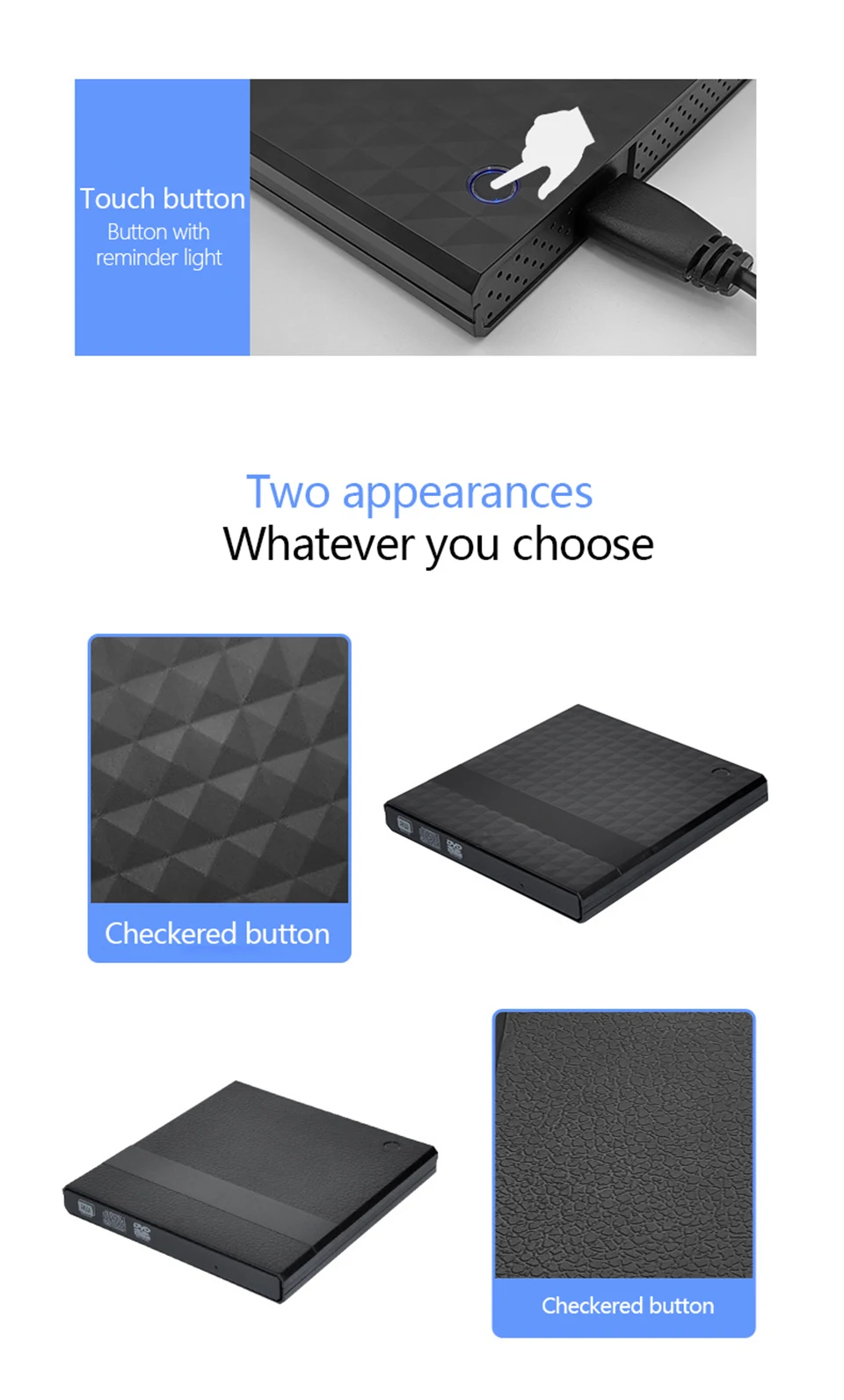 Type: External DVD-RW Material: ABS environmental protection plastic material Color: Black Size: 148*142*16.2mm Interface type: usb 3.0 & type-c CD loading method: tray type Read disc format : All Supportable Disc Standards: DVD-RW Write Format: DVD-RW Cache Capacity: 2mb Read Speed: DVD-ROM: 8X Larger CD-ROM: 24X Larger Write Speed: CD-R: Max.24X CD -RW: 16X DVD-R: Max.8X DVD-RDL: Max.4X DVD-RW: Max.6X Dvd + r: max.8x Dvd + r dl: max.4x Dvd + rw: max.8x DVD-RAM : 3x-5xpcav (8gb)