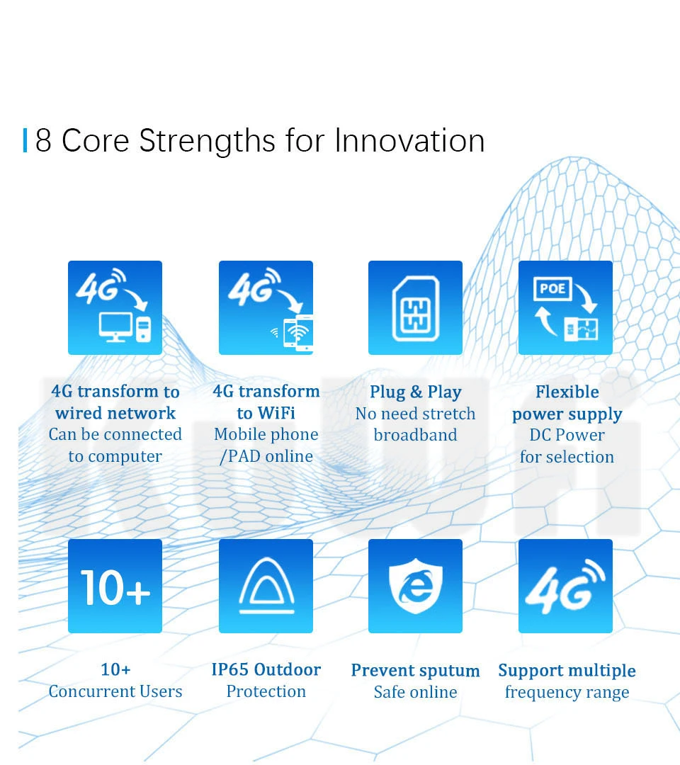 The device is equipped with 2.4G and 4G high gain omnidirectional antennas, either wired or wireless. More stable Internet access.